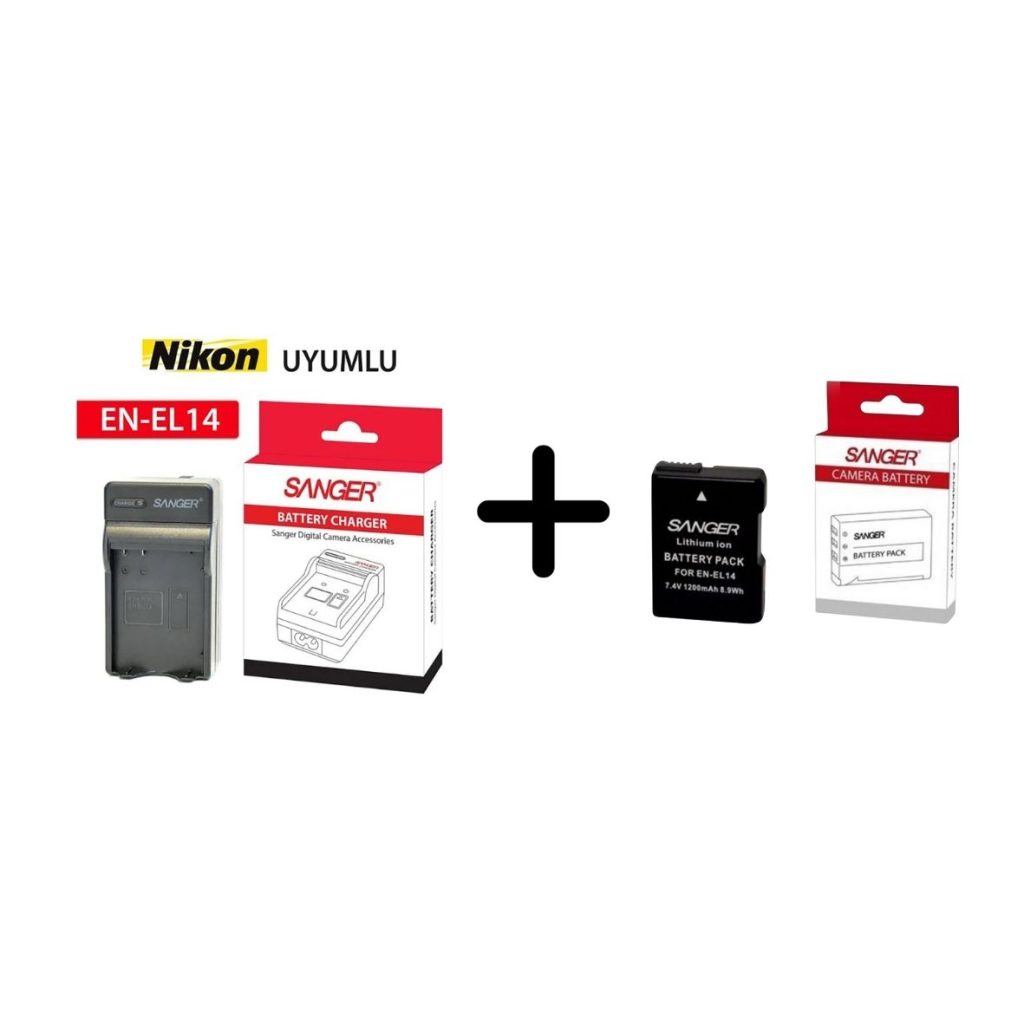 Sanger,Nikon En-El14 Fotoğraf Makinesi Bataryası Ve Şarj Cihazı.